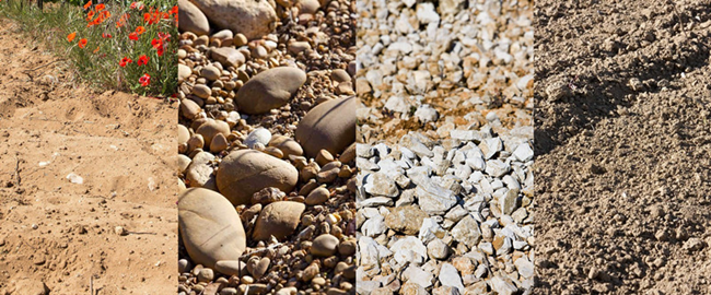 羅納河谷葡萄園坐落于中央高原(Massif Central)與阿爾卑斯山(Alps)之間,北邊被中央高原古老的噴發(fā)巖所覆蓋,南邊是中生代(侏羅紀(jì)和白堊紀(jì))的海洋沉積土壤,以石灰?guī)r為主。第三紀(jì)末(約2400萬(wàn)年至700萬(wàn)年前),阿爾卑斯山的形成,使得河谷崩裂,將高原分成兩半。地中海的海水涌進(jìn)來(lái),用巖屑填滿了河谷。從第四紀(jì)開(kāi)始,河谷的坡面形成了很多沖積和崩積而來(lái)的階地。如今,羅納河谷葡萄園的風(fēng)土主要由四種巖石構(gòu)成:花崗巖、沙土、石灰?guī)r和黏土。這些母巖對(duì)葡萄樹(shù)根部保持適宜的水分起到了關(guān)鍵作用,為這里的葡萄酒帶來(lái)結(jié)構(gòu)與芳香。