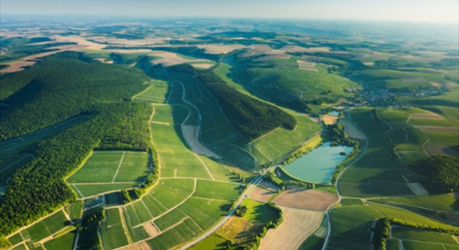 夏布利是勃艮第最靠北的葡萄酒產(chǎn)區(qū),被譽(yù)為通向勃艮第產(chǎn)區(qū)的“金色門戶”,距離更靠北的香檳產(chǎn)區(qū)不遠(yuǎn)。夏布利產(chǎn)區(qū)位于北緯47°左右,主要以大陸性氣候?yàn)橹鳌.?dāng)?shù)厝荷江h(huán)繞,瑟蘭河(Serein)從中穿過,葡萄園大都分布在河谷兩側(cè)的山坡上。