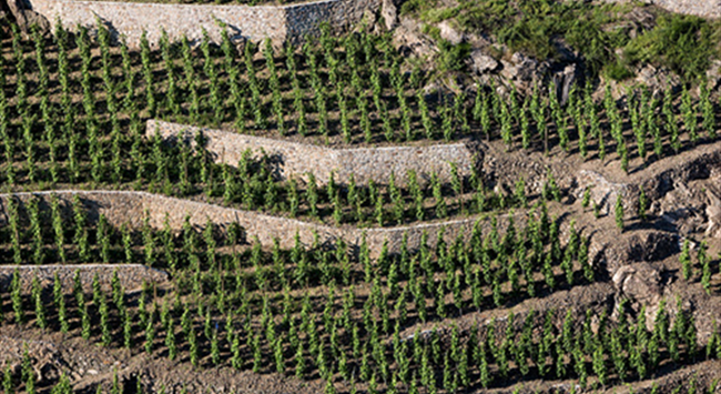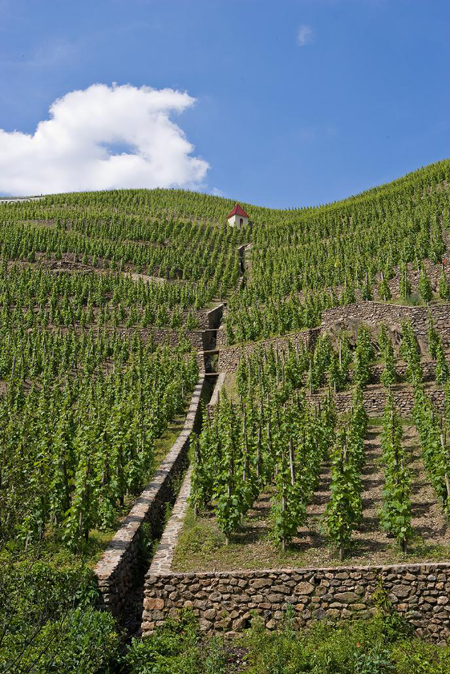 羅第丘地勢陡峭,有些山坡的坡度可達60度。為了蓄水保土,人們建造了被當(dāng)?shù)厝朔Q為“cheys”的石墻,它們經(jīng)年累月地佇立在羅第丘,見證了歲月變遷和人事變換,有些石墻的建造甚至可追溯至羅馬時期。經(jīng)過人類兩千多年的“雕刻”,這些石墻使羅第丘形成了狀似梯田的壯麗景觀。
