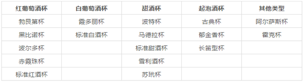 常見(jiàn)的葡萄酒杯有以下種類(lèi):