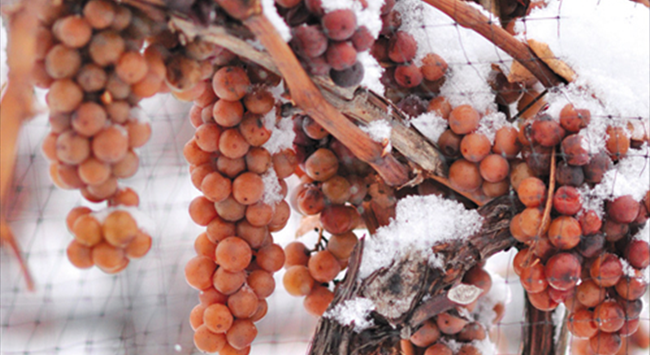 釀制冰酒的葡萄成熟度應(yīng)至少達到BA的水平,且需在果實中的水分已結(jié)冰的狀態(tài)下人工采摘和壓榨,以獲得糖分、酸度和風(fēng)味物質(zhì)高度濃縮的葡萄汁。這種情況下壓制出來的果汁非常少,因此冰酒產(chǎn)量極低,平時釀造一瓶酒的等量葡萄或許僅能釀制一杯冰酒。因?qū)μ鞖鈼l件要求高,冰酒同樣不是每一年都能釀造的。