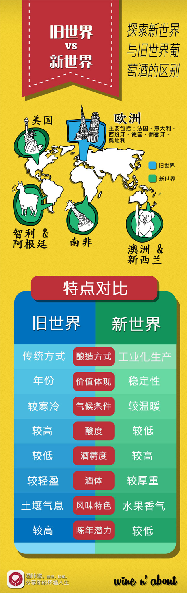 我們常常聽到有人說他/她偏愛新世界或舊世界的葡萄酒,然而,對于新、舊世界葡萄酒的區(qū)別,大家又真的了解多少呢?
