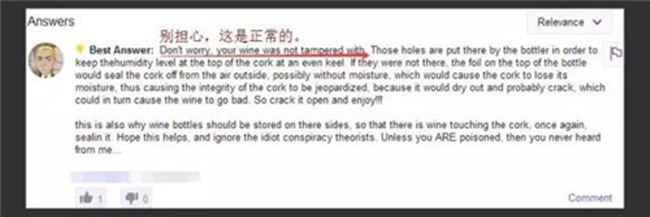 當然,也有資深酒粉來答疑。這些小孔是生產商特意為之,“存在即合理”,這些小孔自有妙用。