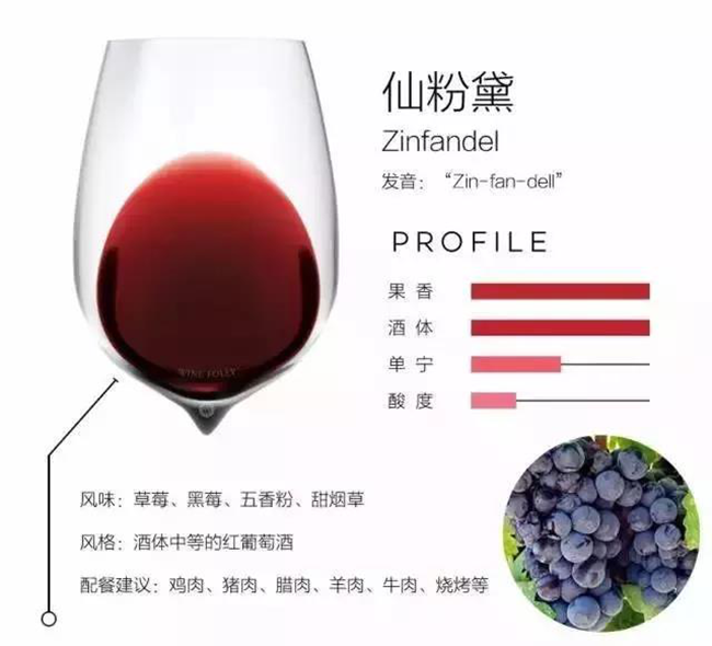 仙粉黛是一款源自克羅地亞(Croatia)的酒體中等的紅葡萄酒。這種葡萄酒果香為主,中長(zhǎng)的余味中帶有香料的味道。