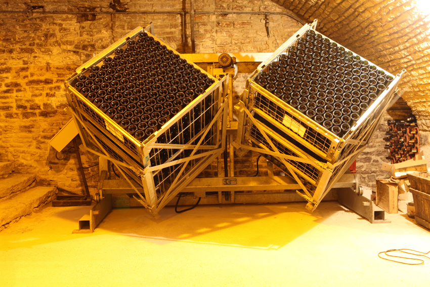 在經(jīng)過這個(gè)漫長(zhǎng)的時(shí)期之后,需要去除在二次發(fā)酵過程中形成的沉淀物,使葡萄酒重新變得清澈。轉(zhuǎn)瓶的工序指的是每天轉(zhuǎn)動(dòng)瓶口朝下放置的葡萄酒瓶,以便使沉淀物集中在瓶子的頸部,使其能夠在冷卻除渣(dégorgement)的工序中被取出。