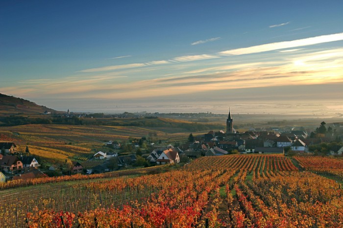 阿爾薩斯地區(qū)的葡萄種植區(qū)靜靜地散布在阿爾薩斯平原的高處,遠離毗鄰三國的經(jīng)濟大區(qū)的喧囂,時間仿佛都在這里停下了腳步。大大小小的葡萄田環(huán)繞著大片簇擁著尖頂?shù)慕烫枚ā⒂兄t色屋頂?shù)男〈迩f。木頭房子和在每一家窗口上盛開的紅色天竺葵和玫瑰將這般平靜的田園景色裝點得好像明信片一樣。紅酒加盟人士認為,整齊有序的葡萄園折射出阿爾薩斯人的嚴謹,而隨處可見的美食餐廳和典型的當?shù)匦【起^"winstubs"則是不折不扣的法國風情。歷史沉淀而成的這種雙重性正是阿爾薩斯地區(qū)引人入勝之處。享受生活、熱情好客和釀出最好的美酒就是他們的處世哲學。著名的"紅酒之路"從北到南貫穿著整片葡萄種植區(qū),成為當?shù)芈糜螛I(yè)的熱點。