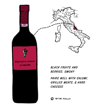 品質(zhì)較高的蒙特布查諾葡萄酒顏色深邃,具有濃郁的黑色漿果氣息,單寧成熟且強(qiáng)勁,因此也常被用來(lái)與其他口感比較柔和的葡萄酒混釀。
