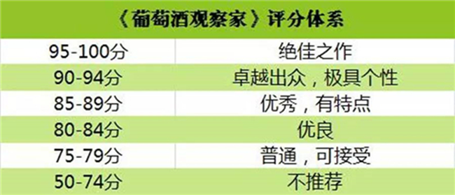 (1)《葡萄酒觀察家》采取 100 分制,起始分為 50 分,共分為 6 個檔次。