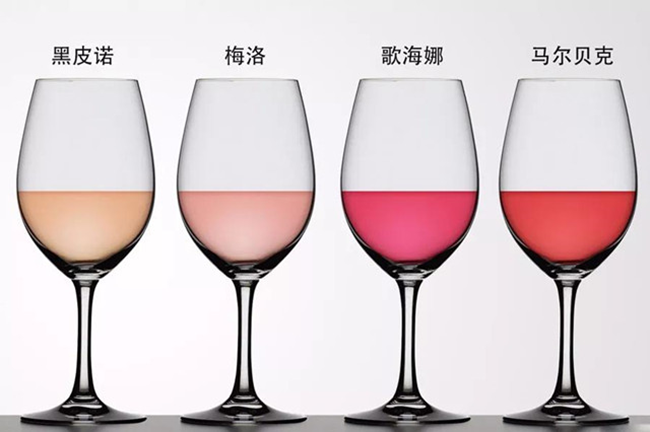 明亮的粉紫色代表的是年輕的桃紅葡萄酒;略帶橙色和棕色則代表陳年。
