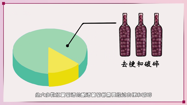 絕大多數用于釀造紅葡萄酒的葡萄都需要在發酵前進行去梗和破碎,但也有釀酒師會選擇在發酵中使用整串未經破碎的葡萄,或是全部采用未經破碎的葡萄串釀造,又或是添加少部分以略微增添風味。