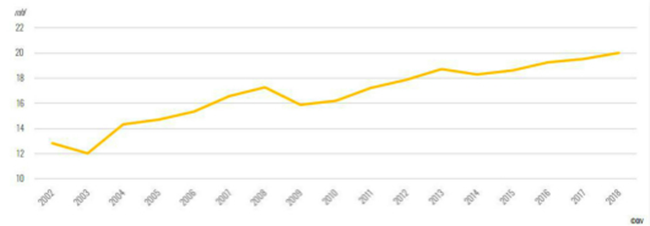 在過去的20年里,全球葡萄酒市場經歷了很大變化,其中起泡葡萄酒的市場發展尤為受關注。近年來,國際葡萄與葡萄酒組織(OIV)也一直在關注起泡葡萄酒市場并于近日發布了最新全球起泡葡萄酒市場報告(2002年-2018年)。