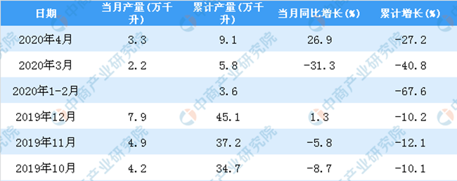 2019-2020年4月全國葡萄酒產量統(tǒng)計數(shù)據