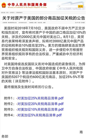 雖然今日中國對自美進口產(chǎn)品加征25%的關稅的產(chǎn)品名單里并不涉及葡萄酒,但是8月3日,商務部發(fā)布的關于對原產(chǎn)于美國的部分商品加征關稅的公告中,卻將葡萄酒列入了“對美加征25%關稅商品清單”,最終措施及生效時間將另行公告。