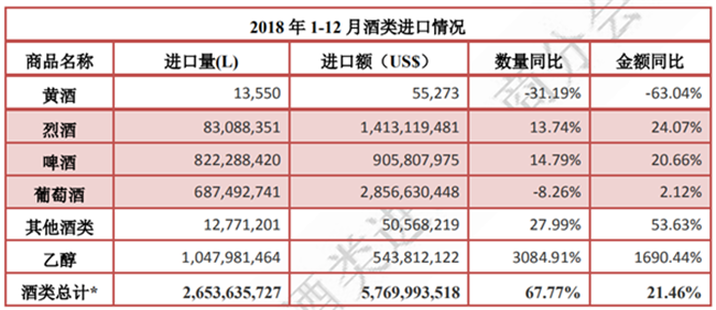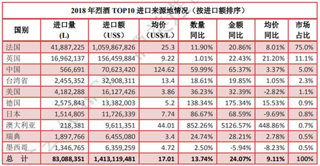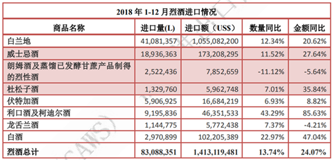 (1)白蘭地進(jìn)口額增至 10.6 億美元,同比增幅為 20.6%,占烈