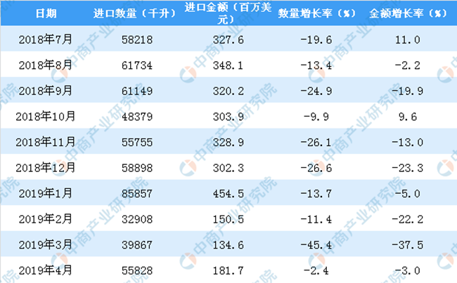 • 2019年1-4月中國葡萄酒進口量同比下降19.6%