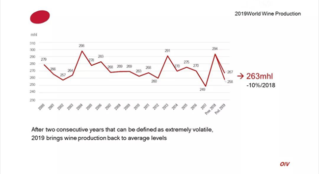 OIV工作人員對媒體表示,2019年全球葡萄酒減產的主因是“氣候災害”。很多產區經歷了寒冷多雨的春天與極度炎熱干燥的夏天,葡萄產量減少。