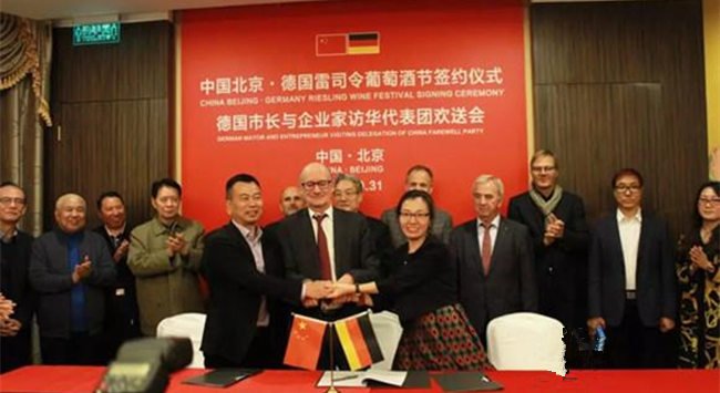 近日,德國市長與企業(yè)家訪華團一行在圓滿完成了北京考察和調(diào)研工作后,來到王府井全聚德紫云花廳,就“德國雷司令葡萄酒節(jié)”落戶北京相關事宜進行了座談,會后中德雙方代表還舉行了“德國雷司令葡萄酒節(jié)”簽約儀式。