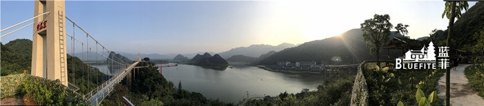 緊接著藍(lán)菲團(tuán)隊(duì)乘坐山體垂直觀光電梯,平布青云,扶遙直上,到達(dá)觀光電梯空中平臺(tái),一起俯瞰1680畝天鵝湖畔。我們相繼踏上擁有廣東省內(nèi)最長(zhǎng)、世界最長(zhǎng)喀斯特地貌湖景玻璃橋美稱的天宮玻璃橋,輕松就能將整個(gè)湖光山色盡收眼眸,翠綠蔥郁的北江峰林重巒疊嶂,天鵝湖依山傍水波光瀲滟,一覽無遺的自然美景凝聚著和諧氛圍,眼前開豁的視野放松了我們的心情。