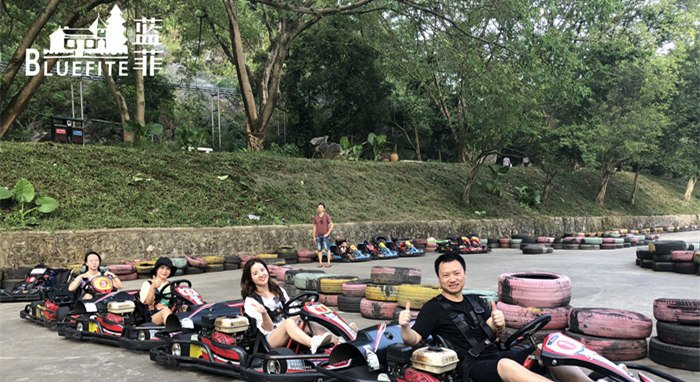 當(dāng)然啦,除了飛龍蹦極,這里還有很多極限活動(dòng)等著我們來打卡,寶晶宮跑跑卡丁車圓了我們的賽車夢(mèng),讓我們親身體驗(yàn)速度與激情,過一把賽車手的癮;天山滑道帶領(lǐng)我們?cè)谏峙c喀斯特地貌之中急速穿行,真實(shí)還原過山車叢林穿越,快速、刺激而又唯美;坐上天鵝湖滑索,飛越千畝湖面,仿佛乘風(fēng)前行,將山青水秀、碧波蕩漾的美景盡收眼底......在一輪又一輪驚險(xiǎn)刺激的游戲項(xiàng)目中,藍(lán)菲伙伴們的工作壓力都得到了盡情的釋放,在美景中返璞歸真,共同沉浸在這質(zhì)樸而浪漫的世外桃源。