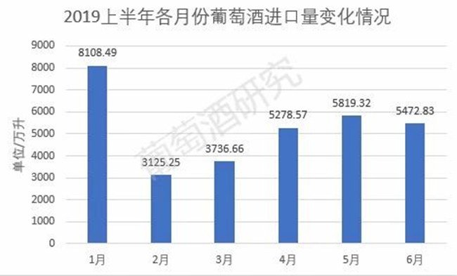 根據(jù)中國食品土畜進出口商會酒類進出口商分會公布2019年1-6月酒類統(tǒng)計數(shù)據(jù)顯示:在2019年的1月份我國葡萄酒進口量達到一個峰值,這主要是受春節(jié)旺季的影響,市場的需求旺盛!藍菲作為進口葡萄酒市場招商企業(yè),早已加大庫存,藍菲酒業(yè)恒溫倉儲中心總面積達三千多平米,可同時容納一百多萬瓶紅酒,為紅酒代理商囤積了常規(guī)銷售量3-6個月的穩(wěn)定貨源。