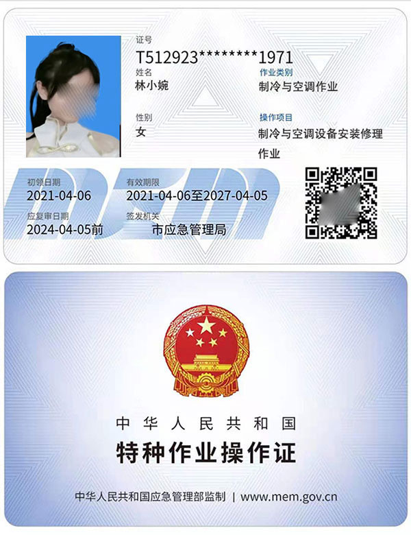特種作業操作證:制冷與空凋設備運行操作作業,制冷與空凋設備安裝修理作業!