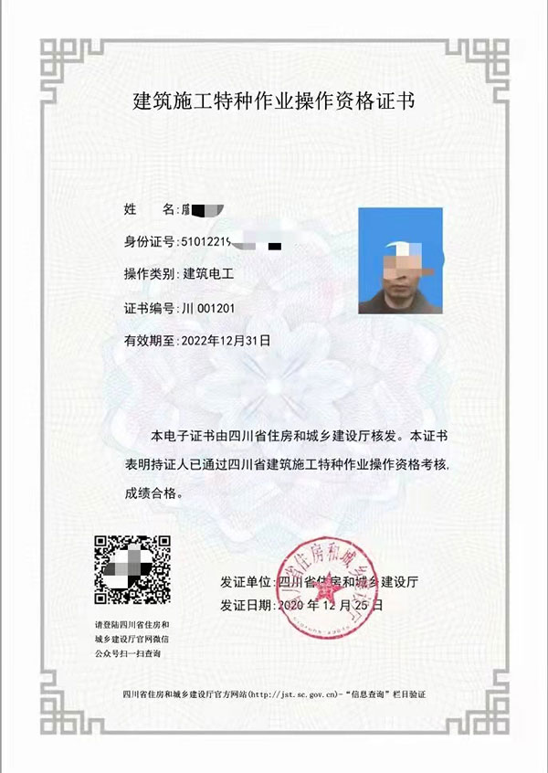 建筑電工證就是我們長期住建廳頒發的工地從業人員必須持有的電工上崗證,以前頒發單位叫建設廳,因為在工地上從事電工作業人員需要持有此上崗證,以前是綠色本子的,像駕駛證一樣的上崗證,現在改版后,是沒有實體證書了,直接從相關網站下載電子版證書就可以了,因為現在住建廳建筑類的建筑類特種作業操作證,是沒有國網查詢的,都是每個省的建設廳官網進行查詢真偽。但你始終要記住一點,說人不去參加考試或者培訓,就直接發證的人員及機構,大部分都是騙人的,建議不要相信,以免上當受騙。