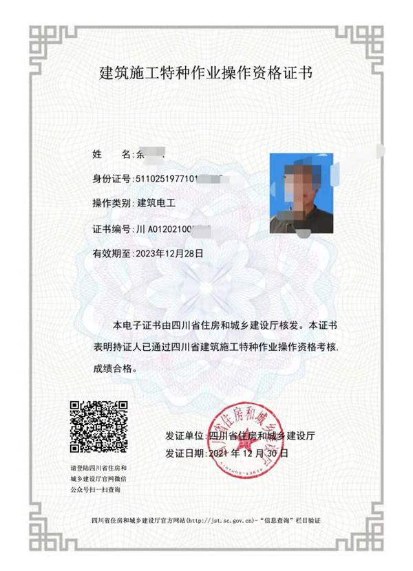 建筑電工證書: