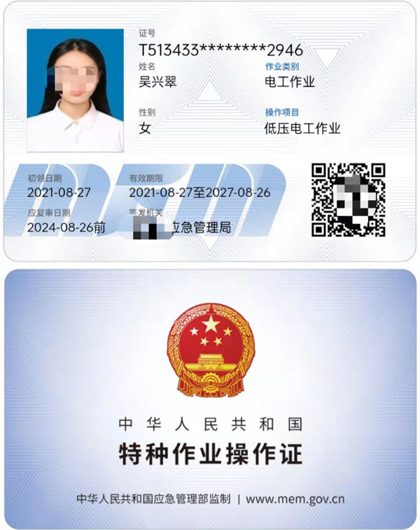 電工證,焊工證,高處作業,登高架設作業,制冷與空凋設備運行操作作業,制冷與空凋設備安裝修理作業,電力電纜,繼電保護,電氣試驗,防爆電氣作業,特種作業人員必須經專門的安全技術培訓并考核合格,取得《中華人民共和國特種作業操作證》(以下簡稱特種作業操作證)后,方可上崗作業。