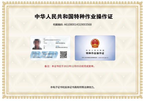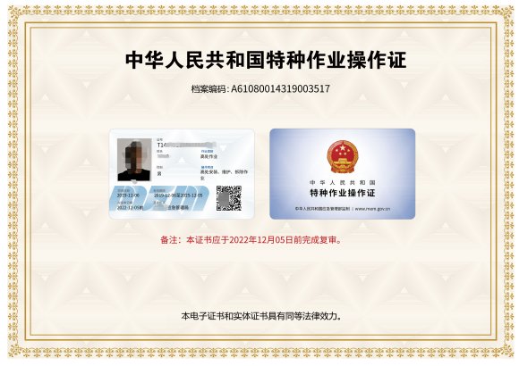 應(yīng)急管理廳特種作業(yè)操作證電子版證書
