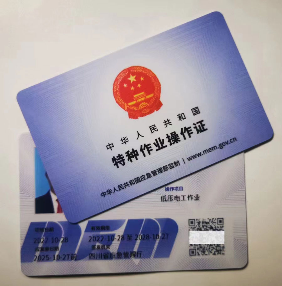 電工證(俗稱操作證、上崗證),分類:高壓運(yùn)行維護(hù)作業(yè)、高壓安裝修造作業(yè)、低壓電工作業(yè)用于、安裝、維修、發(fā)電、配電, 電工證,焊工證等,高處安裝,登高架設(shè)作業(yè),制冷與空凋設(shè)備運(yùn)行操作作業(yè),制冷與空凋設(shè)備安裝修理作業(yè),電力電纜,繼電保護(hù),電氣試驗(yàn),防爆電氣作業(yè),特種作業(yè)人員必須經(jīng)專門的安全技術(shù)培訓(xùn)并考核合格,取得《中華人民共和國(guó)特種作業(yè)操作證》(以下簡(jiǎn)稱特種作業(yè)操作證)后,方可上崗作業(yè)。