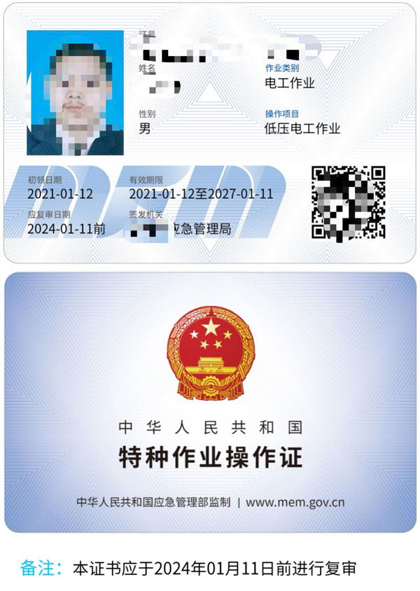 四川應急管理廳(原安監局):電工證-低壓-高壓,熔化焊接與熱切割作業-焊工證,電力電纜,繼電保護,電氣試驗,防爆電氣作業,高處安裝維護拆除作業,登高架設作業,制冷與空凋設備運行操作作業,制冷與空凋設備安裝修理作業,施工吊裝作業,施工挖裝作業,危化品負責人/管理人員,危化品從業人員上崗證,新辦,(審證,換證,3年一審,6年一換)特種作業人員必須經專門的安全技術培訓并考核合格,取得《中華人民共和國特種作業操作證》(以下簡稱特種作業操作證)后,方可上崗作業。
